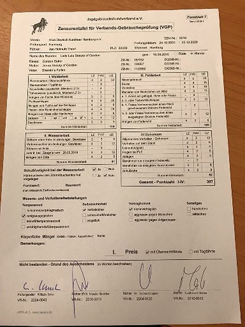 Lady Lulu besteht VGP im 1. Preis mit 307 Punkten; sagenhaft!!
