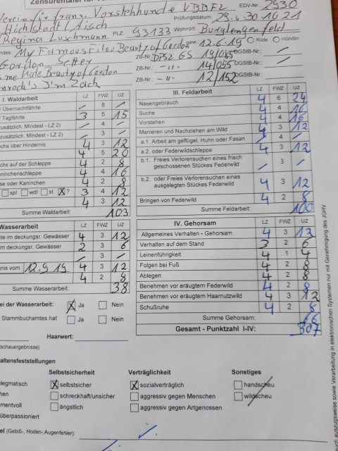 Am 29./30.10.2021 bestand Filou die VGP beim Verein für französische Vorstehhunde mit einem hervorragenden 2. Preis und 307 Punkten!!