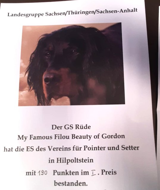 Am Sonntag traten wieder ca. 20 Hunde an. Hier konnten sich zwei Eixelberger Gordons excellent platzieren, herzlichen Glückwunsch an Gerd Sebald. Die restlichen startenden Hunde konnten keine Platzierung erreichen.