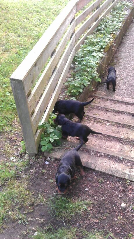 Unser Gordon Setter K-Wurf, im Alter von 5 Wochen: